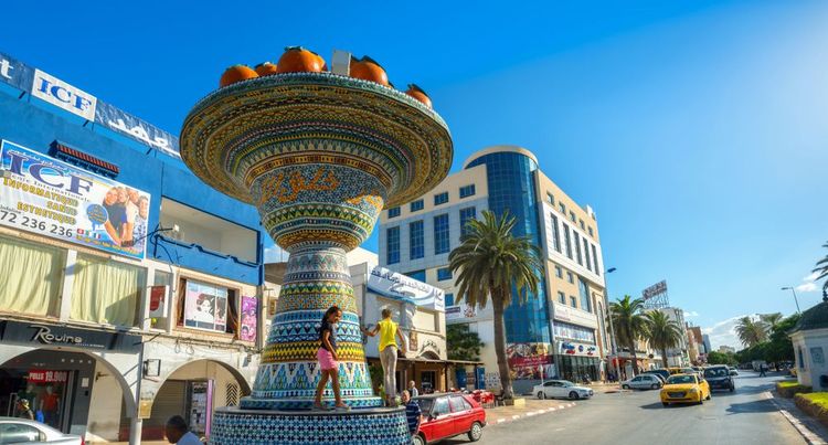 Rue de Nabeul con una scultura in ceramica