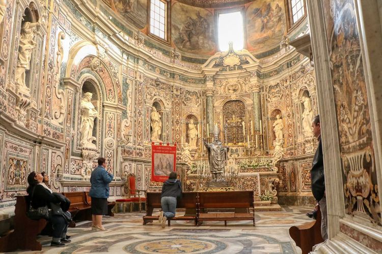 All'interno vi accoglie una navata centrale ampia e luminosa, impreziosita da affreschi, marmi policromi e stucchi. Il punto culminante della visita è senza dubbio la Cappella di San Cataldo, dove si trova il sarcofago con le reliquie del santo. Quest'area è un capolavoro di arte barocca, decorata con oro e marmi preziosi, che crea un'atmosfera di solenne spiritualità. Inoltre, non bisogna perdere il ciborio bizantino, una struttura ottagonale in marmo che si erge sull'altare maggiore e rappresenta uno dei pochi esempi sopravvissuti di arte bizantina in Italia meridionale.