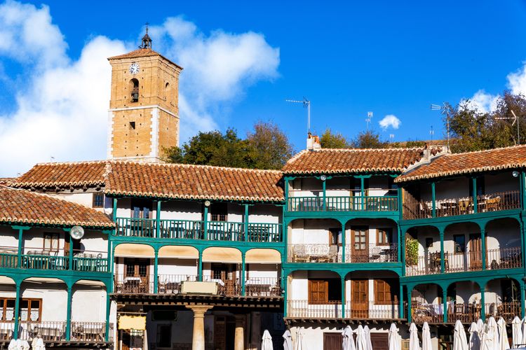 Il borgo storico di Chinchón vanta una piazza ancestrale. Se venite a visitare questo affascinante villaggio, arriverete alla sua emblematica Plaza Mayor. La sua pianta, simbolo dell'architettura popolare castigliana, presenta numerosi portici, tetti a terrazza e quasi duecentotrentaquattro balconi dipinti di verde. Intorno a questo centro nevralgico di Chinchón si trovano case e negozi.