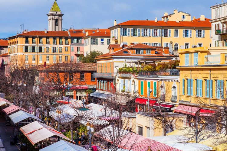 Il Vieux Nice è pieno di attività e ospita un mercato storico ogni giorno dell'anno. Il mercato di Cours Saleya, che unisce il fascino della città alla calma del mare, attira sia i turisti che gli abitanti del luogo. Fiori, frutta, verdura, socca, oggetti d'antiquariato e mazzi di lavanda essiccata si trovano sulle bancarelle di decine di venditori. Un tempo ritrovo di grossisti che si rifornivano di tulipani, rose e giacinti e li trasportavano in tutta Europa, oggi è un luogo vivo a sé stante e centrale per la città di Nizza. Ristoranti, bar e negozi di souvenir condividono il Cours Saleya con il mercato, sotto il sole del Mediterraneo. Dopo un po' di shopping, un buon pasto e una visita alle "ponchettes", dirigetevi verso la spiaggia o la collina dello Château per continuare la vostra passeggiata.
