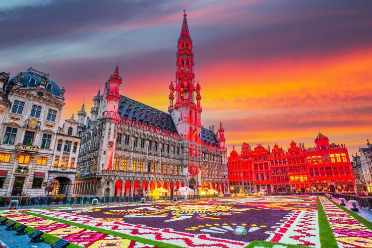 La Grand-Place durante il festival Flower Carpet, Bruxelles, Belgio.