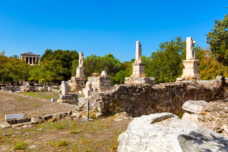 Il sito è stato occupato ininterrottamente fin dalla nascita della città. Già nel tardo Neolitico (intorno al 3000 a.C.), il sito veniva utilizzato come spazio residenziale e di sepoltura. Il sito divenne un luogo pubblico già nel VI secolo a.C. Con una composizione culturale e politica in continua evoluzione, l'Agorà assunse molte forme diverse prima di raggiungere quella che conosciamo nel II secolo a.C. Varie attività edilizie furono intraprese nel corso dei secoli, dai Persiani nel 480 a.C. e dai Romani nell'89 a.C., agli Slavi nel 580 d.C., prima di essere gradualmente abbandonata. Il sito tornò ad essere attivo e residenziale dal periodo bizantino fino a circa gli anni Trenta del XIX secolo, prima che potessero essere condotti scavi archeologici. Gli scavi archeologici più importanti sono stati avviati a metà del XIX secolo e sono tuttora in corso. A metà degli anni '70 sono stati effettuati importanti lavori di restauro presso l'Efestione o Tempio di Efesto.