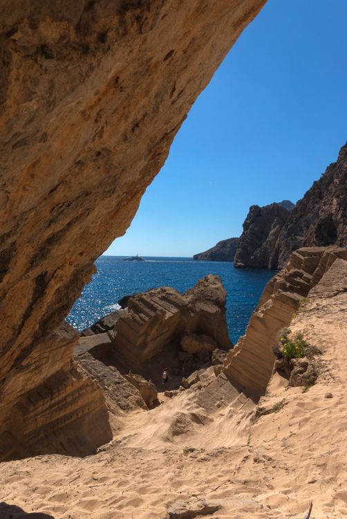 Gli hippy l'hanno trasformata in un rifugio e hanno scolpito nelle rocce notevoli disegni hindu, rendendo il luogo ancora più magico. Portate con voi l'attrezzatura da snorkeling per osservare i sublimi pesci iridescenti nelle acque cristalline del paradiso. Attenzione, qui ci sono poche zone d'ombra, quindi evitate di andare in una giornata calda e portate con voi cappelli e crema solare. Dopo aver scalato le scogliere, concludete la giornata con uno splendido tramonto di fronte all'imponente isola di Es Vedrà.
