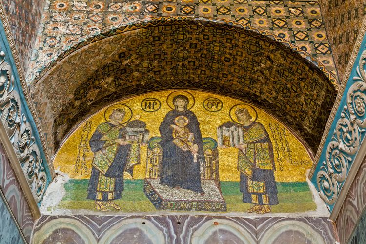 Al secondo piano della basilica si possono ammirare i mosaici storici. Il mosaico più famoso mostra l'imperatore Costantino e l'imperatrice Zoe che venerano Cristo.