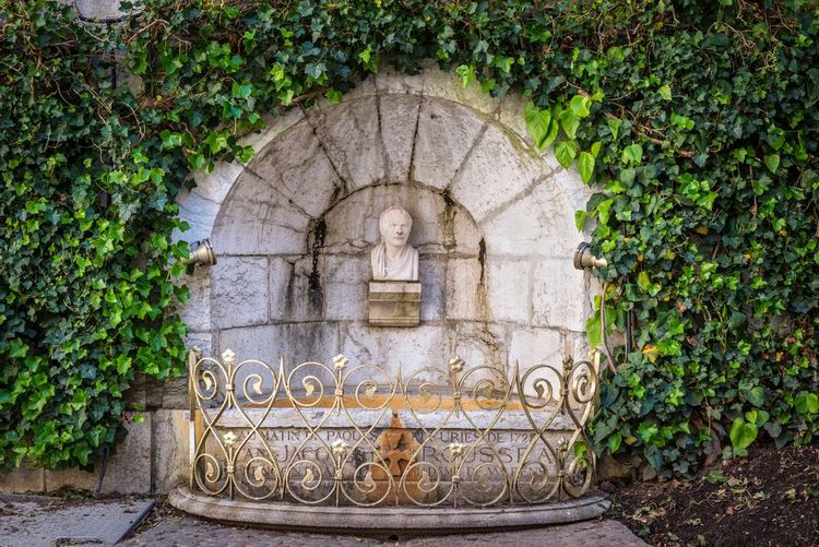 Nel cortile del palazzo episcopale, oggi conservatorio di musica e danza della città, si trovano la fontana e la vasca, misteriosa quanto sconcertante, circondata da una balaustra d'oro formata da cuori intrecciati. La delicata barriera protegge il busto di Jean-Jacques Rousseau, il grande scrittore e filosofo genovese. La statua si erge orgogliosa nel punto in cui Rousseau incontrò Madame de Warens, che lo accolse al suo arrivo da Ginevra. Il dolce ricordo dell'autore è stato riproposto nel 1928 grazie al suo libro Confessioni. La vasca si trova all'angolo tra rue Filaterie, rue Jean-Jacques Rousseau e quai Madame de Warens.
