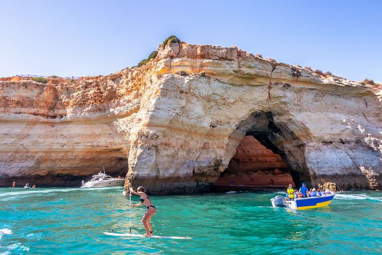 La cittadina di Carvoeiro si trova nel sud del Portogallo, nella regione dell'Algarve. Sulle rive dell'Oceano Atlantico, questo ex villaggio di pescatori ha conservato il suo fascino antico. Al centro si trova una graziosa spiaggetta incastonata nel cuore delle scogliere. Su entrambi i lati si affacciano casette colorate che offrono un panorama eccezionale sul mare. Alcune barche di pescatori sedute sulla sabbia completano uno scenario degno delle più belle cartoline portoghesi!